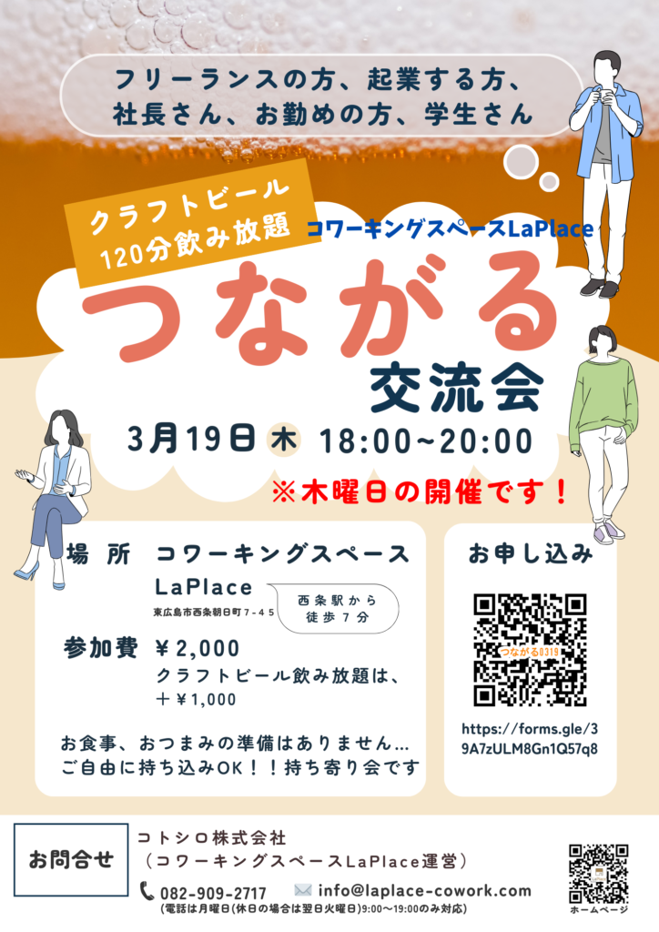 コワーキングスペースLaPlaceで開催する交流会です。